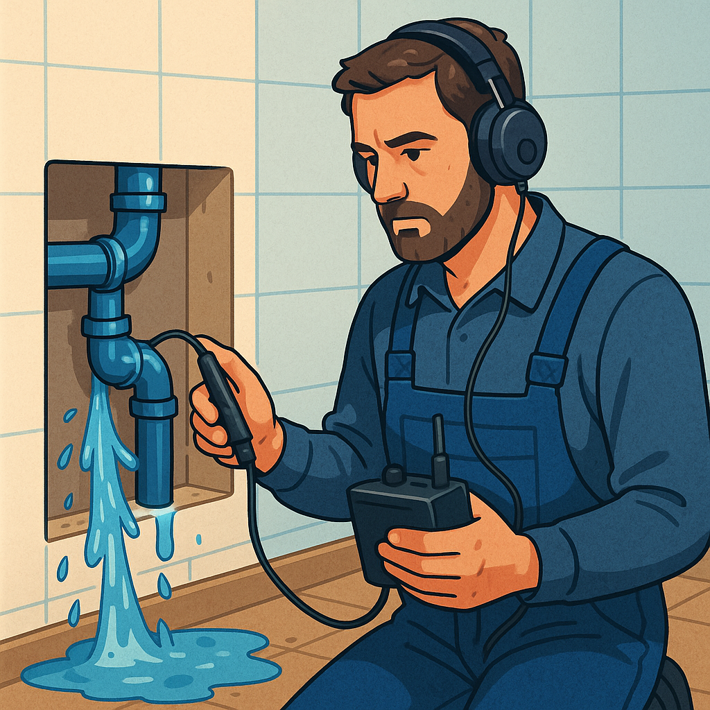 2. التحرك الفوري: إرسال فريق متخصص مع كاشف تسرب الماء